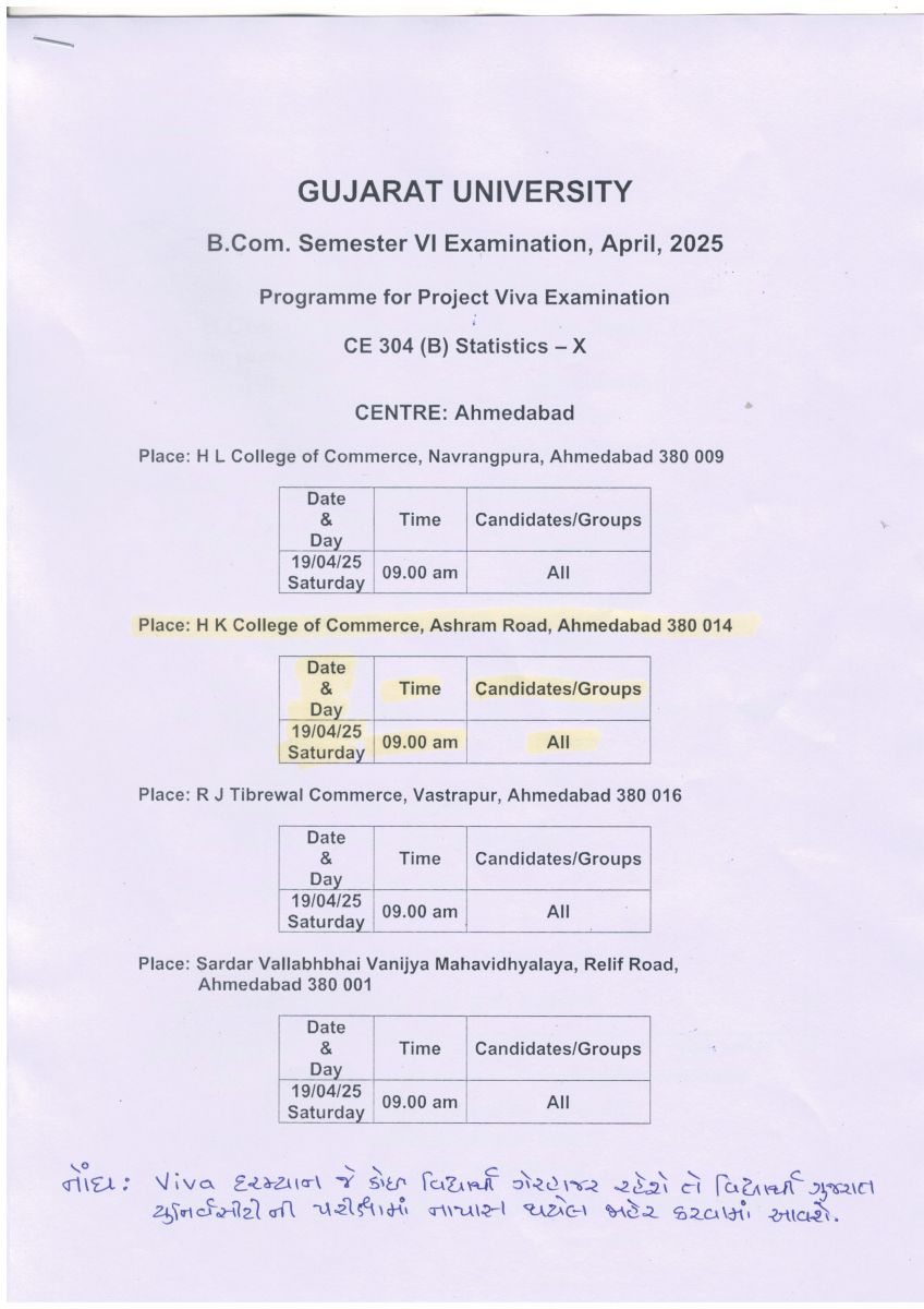 GUJARAT UNIVERSITY BCOM SEM 5 & MCOM SEM 3 PURAK EXAMINATION