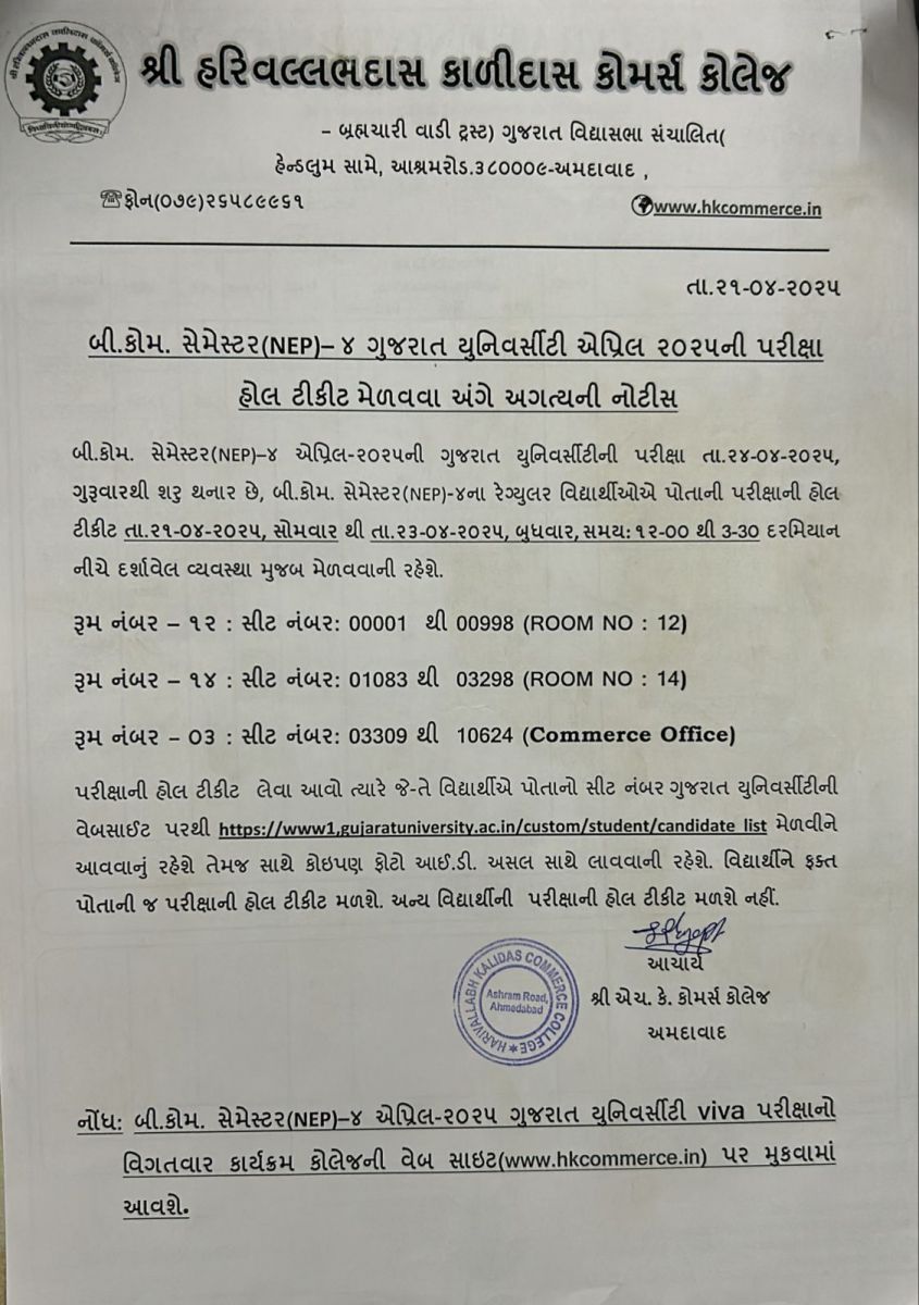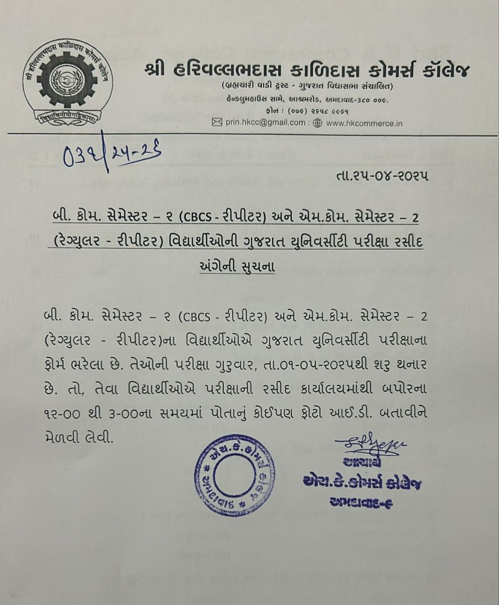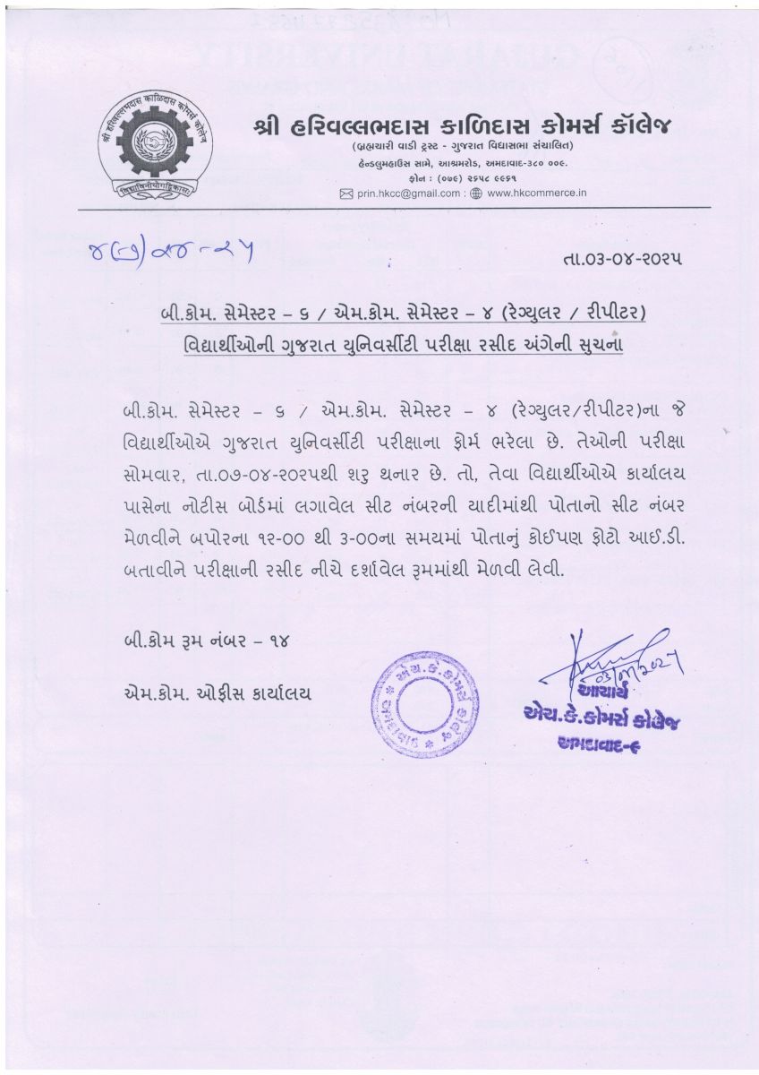 બી. કોમ. સેમ. – ૫ અને એમ. કોમ. સેમ. – ૩ યુનીવર્સીટી પરીક્ષા આપવા માંગતા વિદ્યાર્થીઓ માટે વિકલ્પ પસંદ કરવાની લિંક (LINK FOR BCOM SEM - 5 MCOM SEM - 3 ONLINE EXAM OPTION REGISTRATION): https://student.gujaratuniversity.ac.in/