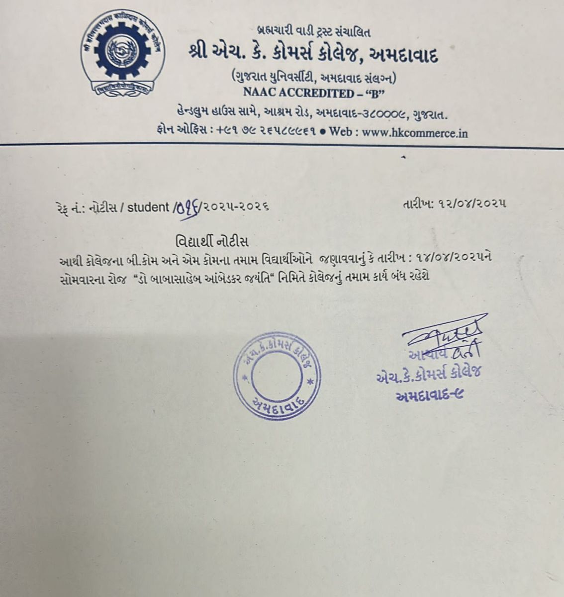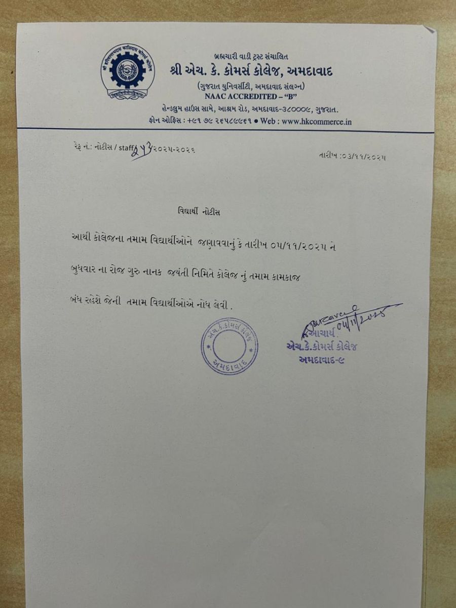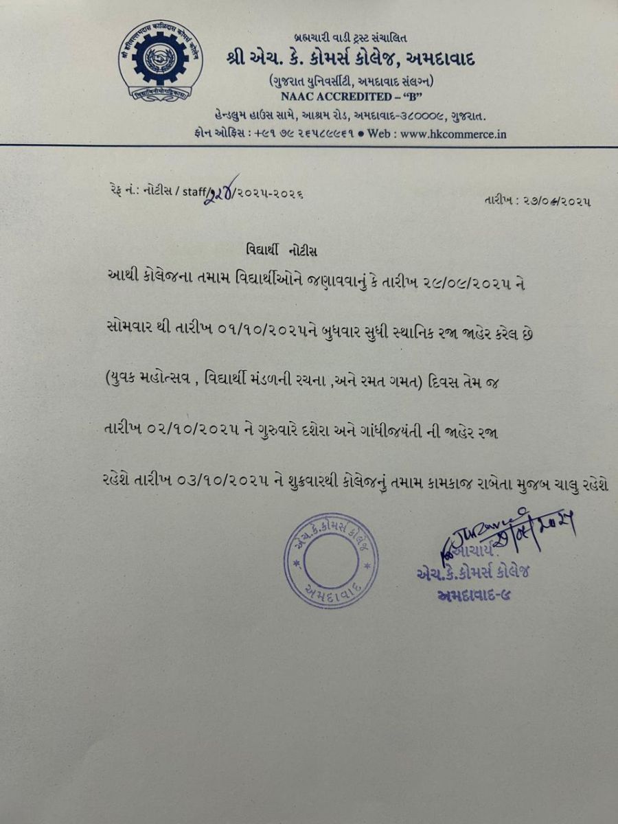 બી.કોમ. સેમે 2ના વિદ્યાર્થીઓની કોલેજની ફી લેઈટ ફી સાથે જમા કરાવવા અંગેની અગત્યની સૂચના