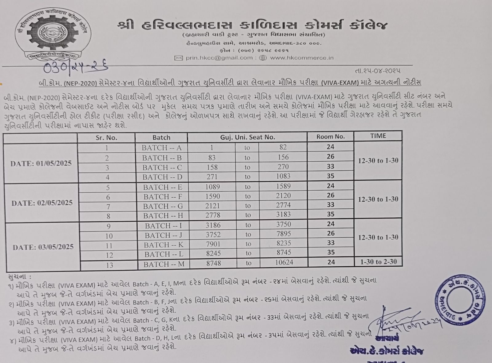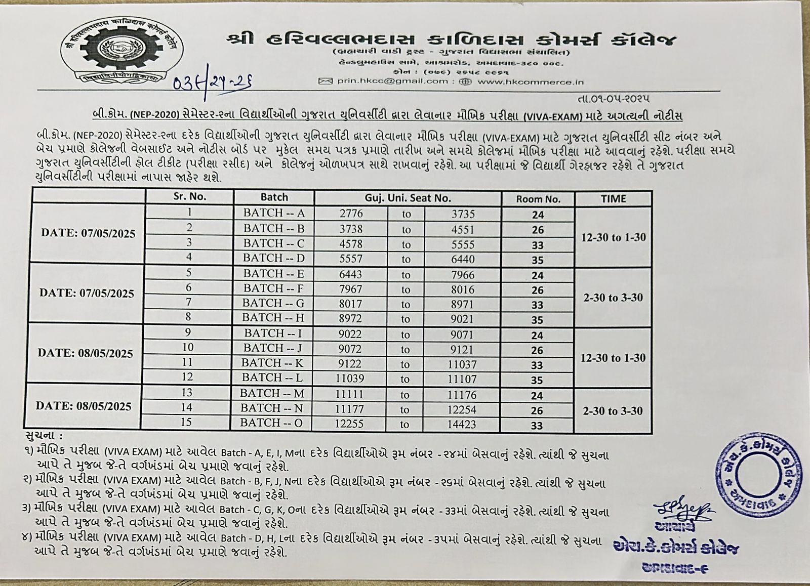 SEATING ARRANGEMENT FOR OFFLINE GUJARAT UNIVERSITY BCOM SEM 1 EXAMINATION