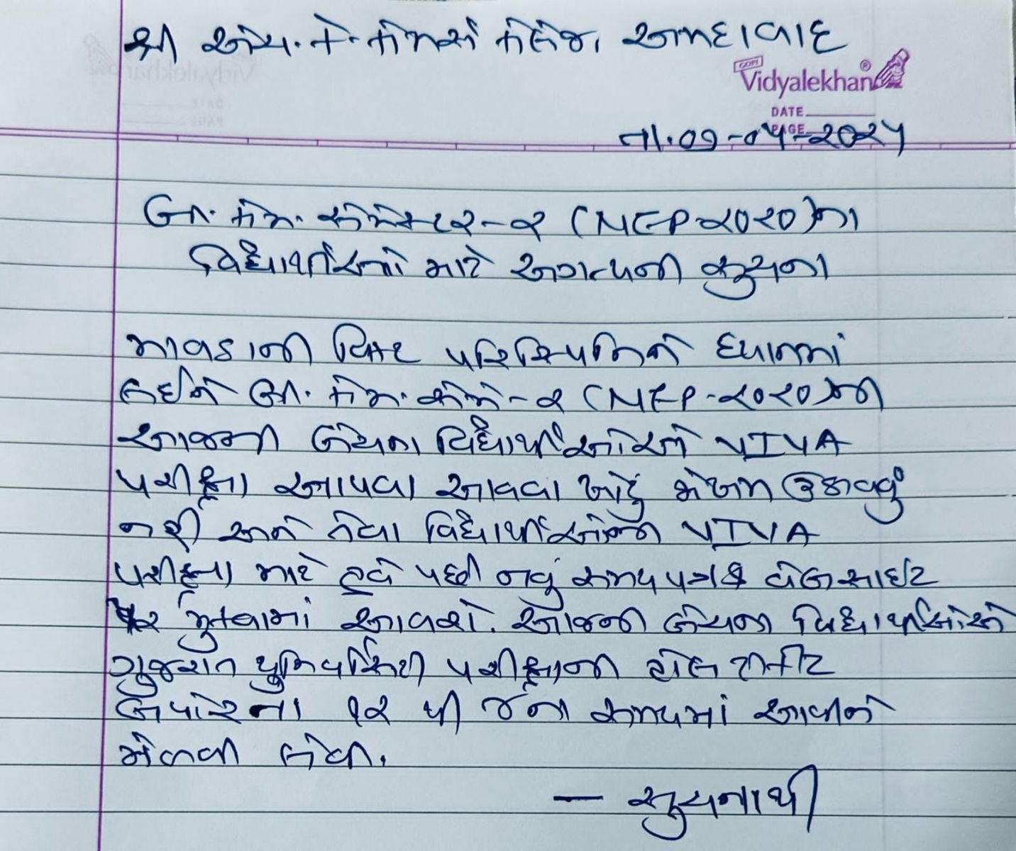 GUJARAT UNIVERSITY NOTICE REGARDING CONDUCTING WRITTEN EXAM FOR AEC_SEC AND VAC_YEAR 2025-26