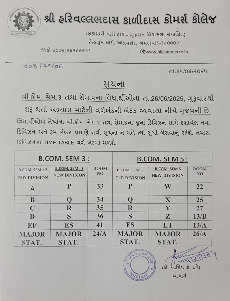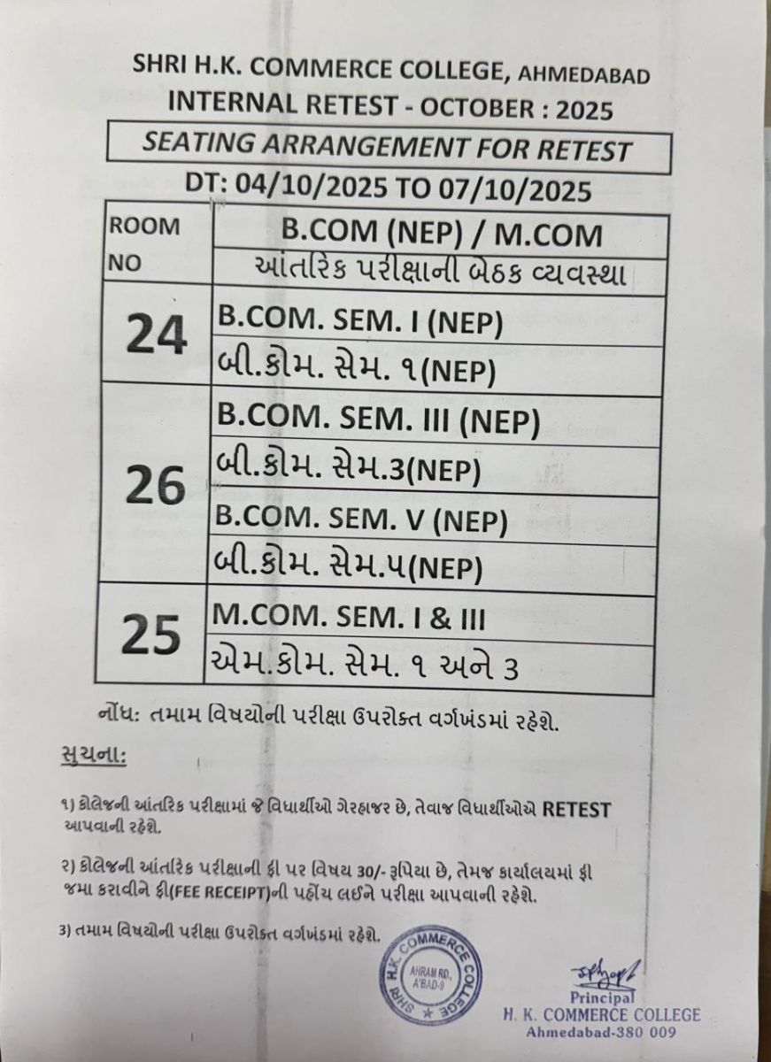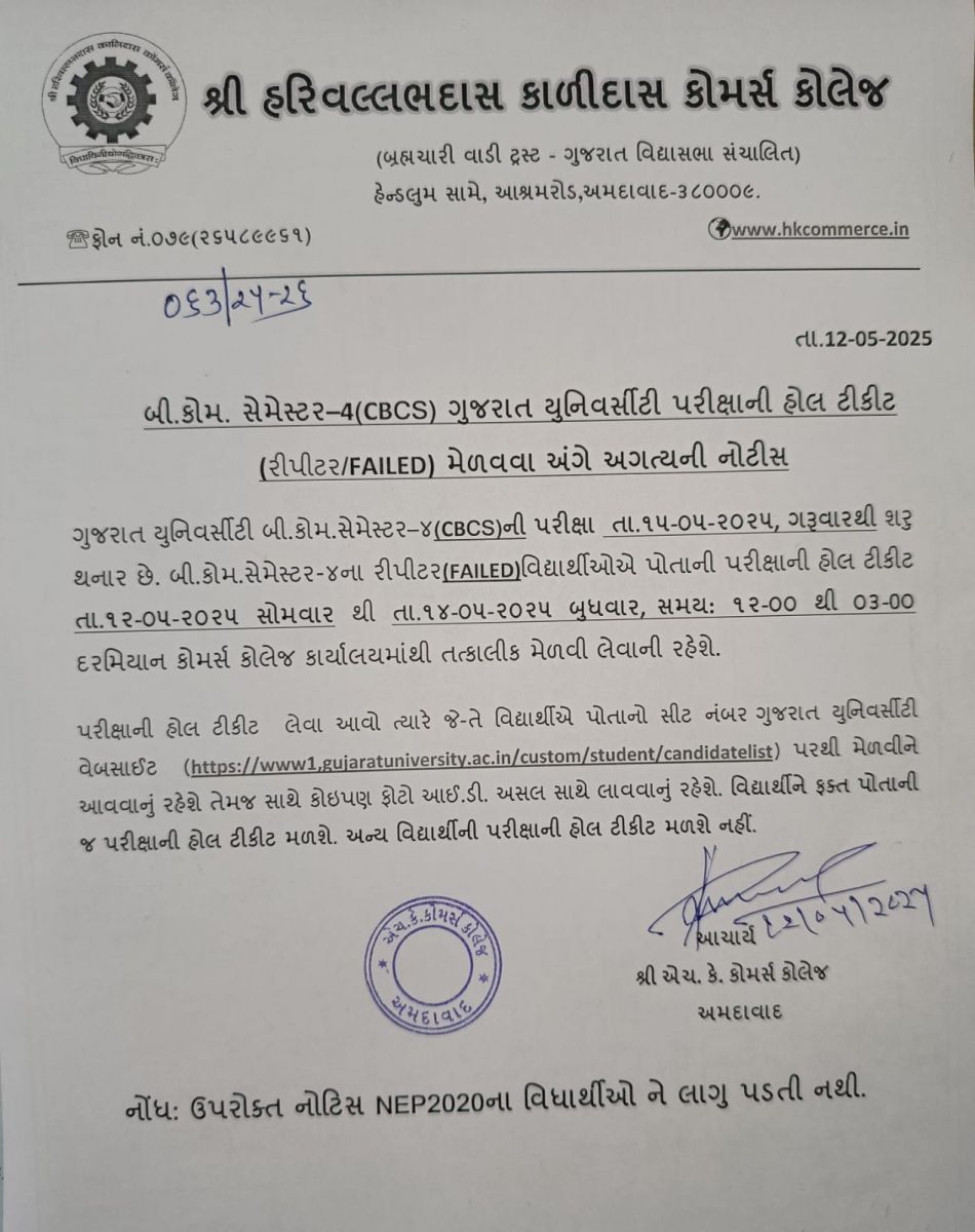 બી. કોમ. સેમ. – ૫ અને એમ. કોમ. સેમ. – ૩ યુનીવર્સીટી પરીક્ષા આપવા માંગતા વિદ્યાર્થીઓ માટે પસંદ કરવાન