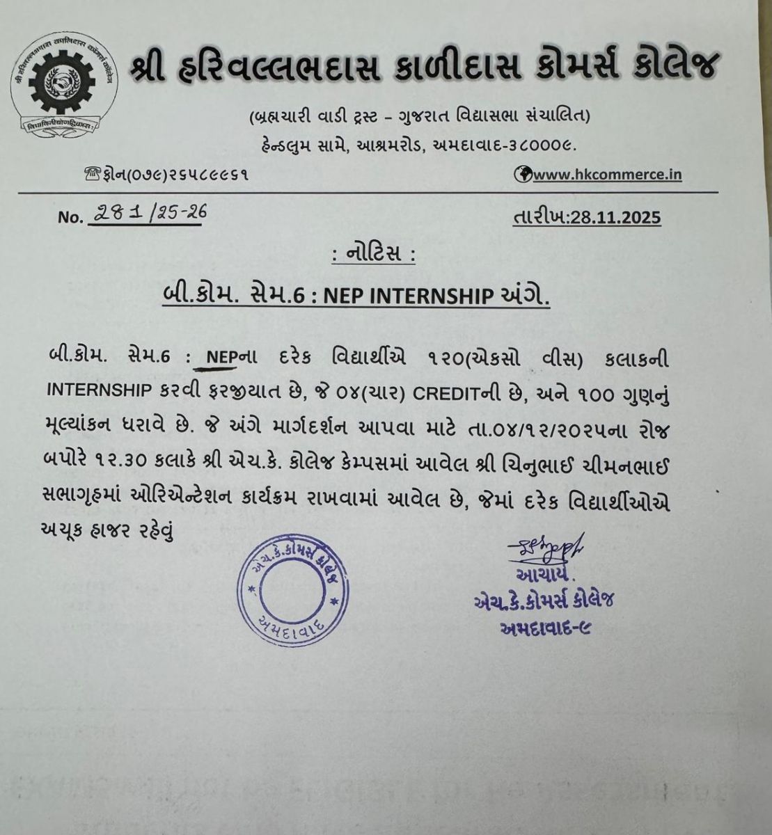 Internship sem-6 NEP- Students