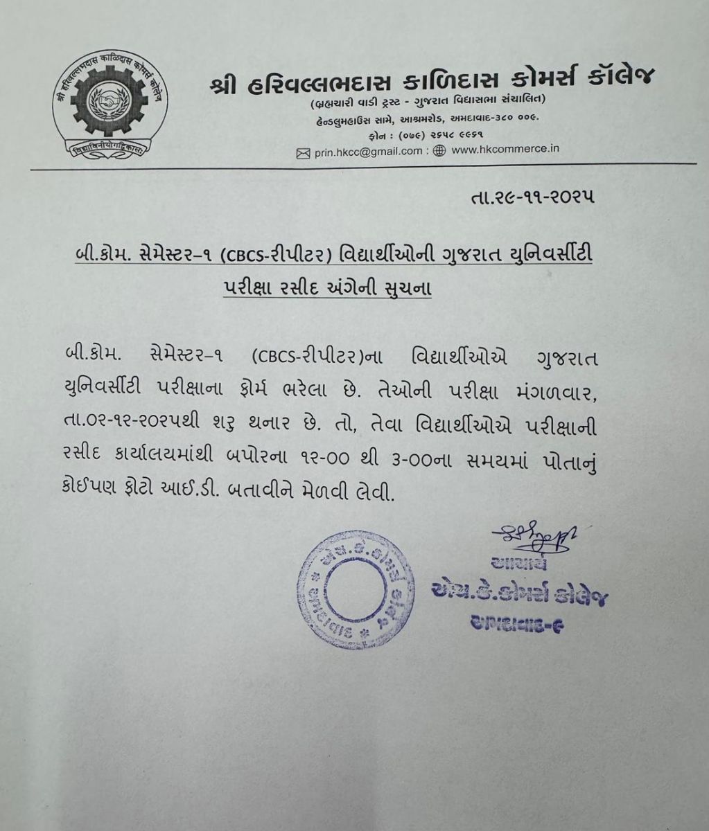 બી. કોમ. સેમ. – ૫ અને એમ. કોમ. સેમ. – ૩ યુનીવર્સીટી પરીક્ષા આપવા માંગતા વિદ્યાર્થીઓ માટે વિકલ્પ પસંદ કરવાની લિંક (LINK FOR BCOM SEM - 5 MCOM SEM - 3 ONLINE EXAM OPTION REGISTRATION): https://student.gujaratuniversity.ac.in/
